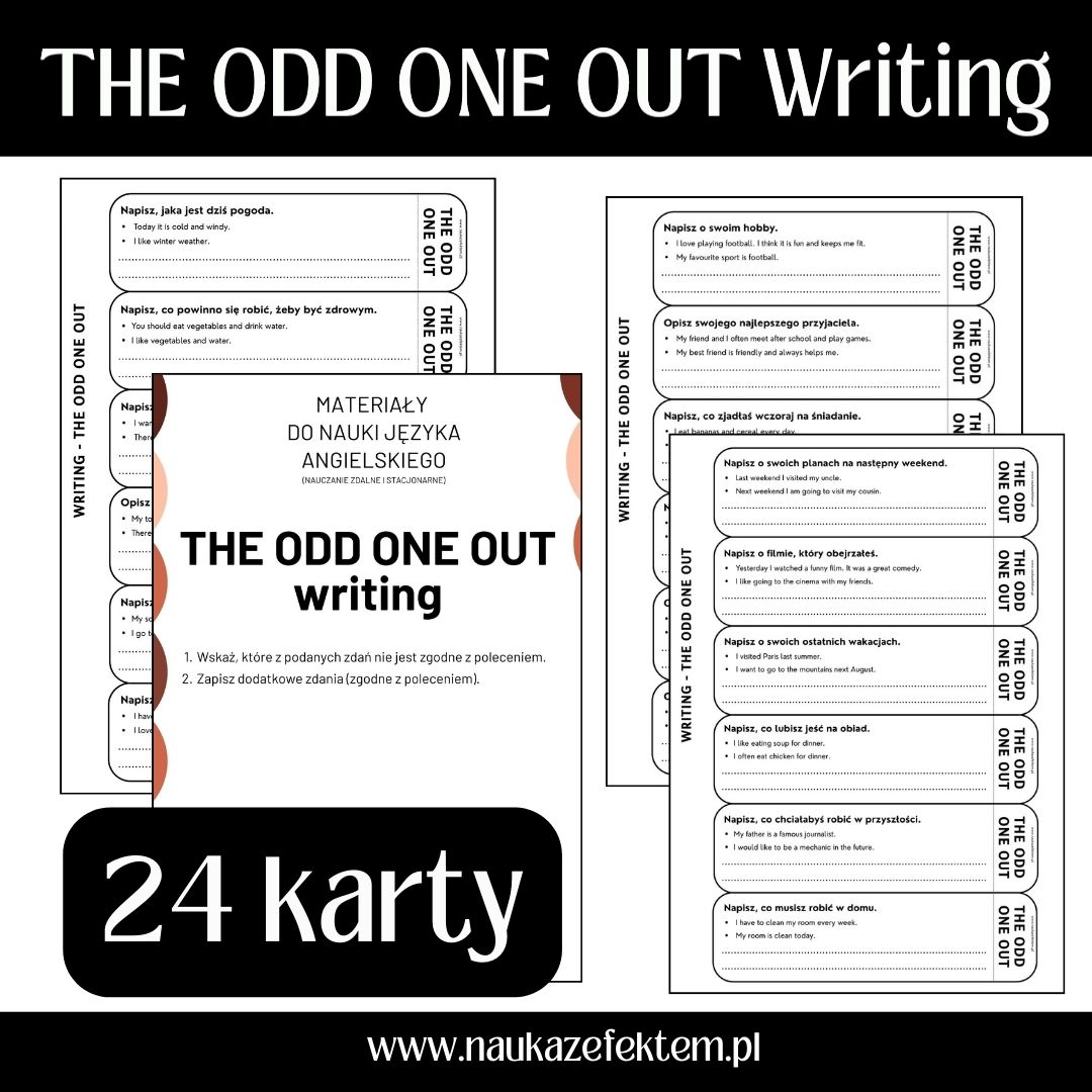 Wskaż, które z podanych zdań nie jest zgodne z poleceniem. To jest zdanie THE ODD ONE OUT.